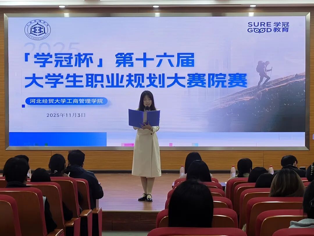 为助力工商学子系统梳理自我特质、锚定职业目标,破解规划迷茫、降低求职试错成本,推动管理学理论知识与真实行业需求深度融合,明晰专业能力在多元职业场景中的实践路径,实现以赛赋能,11月3日,太阳成集团tyc33455cc官方网站开展了第十六届老员工职业规划大赛院赛。公司党委副书记宋欣、正处级辅导员马章山、团委书记(员工工作办公室主任)王晓东、人力资源管理系主任杨鹏、专任教师刘爽、就业联络员赵靓丹担任评委,特邀公司就业指导服务中心楚晓梅老师莅临指导,本次比赛由院主持队成员杨佳烨主持,部分员工观摩。