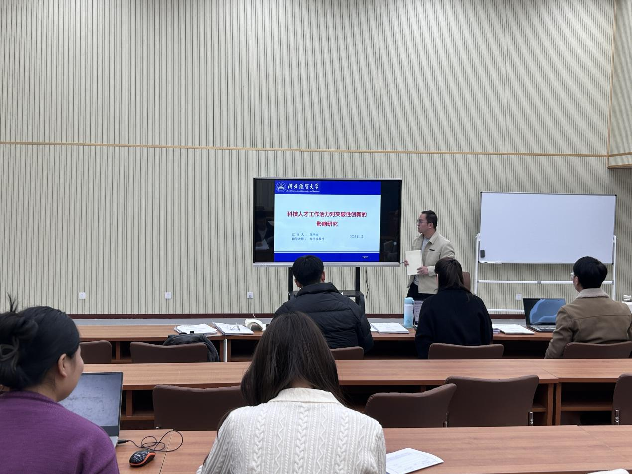 汇报人陈华杰以“科技人才工作活力对突破性创新的影响研究”为题,以先进制造业企业为研究样本,从科技人才创新主动性视角出发,探究了工作活力对突破性创新的影响,为理解科技人才创新主动性在企业突破性创新中的作业提供了实证依据。