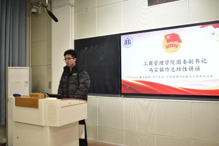 活动最后,冯宣铭对本次开班仪式作总结性讲话,他强调,本次青马工程以党的二十届四中全会精神为指导,通过理论授课、思想交流与实践锻炼相结合的方式,助力学员夯实理论根基,提升综合能力。他向学员提出专注理论学习、积极投入实践、自觉担当责任三点要求,勉励大家将个人发展与国家战略需求紧密结合,珍惜学习机会,以专业能力践行青年担当,在国家发展进程中展现青春作为。