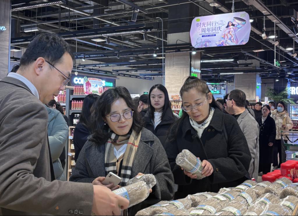 在裕华店运营经理的引导和详细讲解下,调研团队依次参观了一楼的超市区、二楼的孕婴专区及三楼的品牌服装区。师生们细致观察了卖场的布局规划、商品陈列、服务细节以及智能化设备的应用,切身感受了信誉楼以顾客为中心的经营理念和精细化运营管理水平。整洁的环境、丰富的商品、员工专业热情的服务给师生们留下了深刻印象。