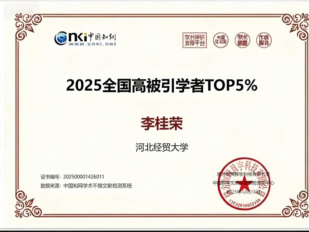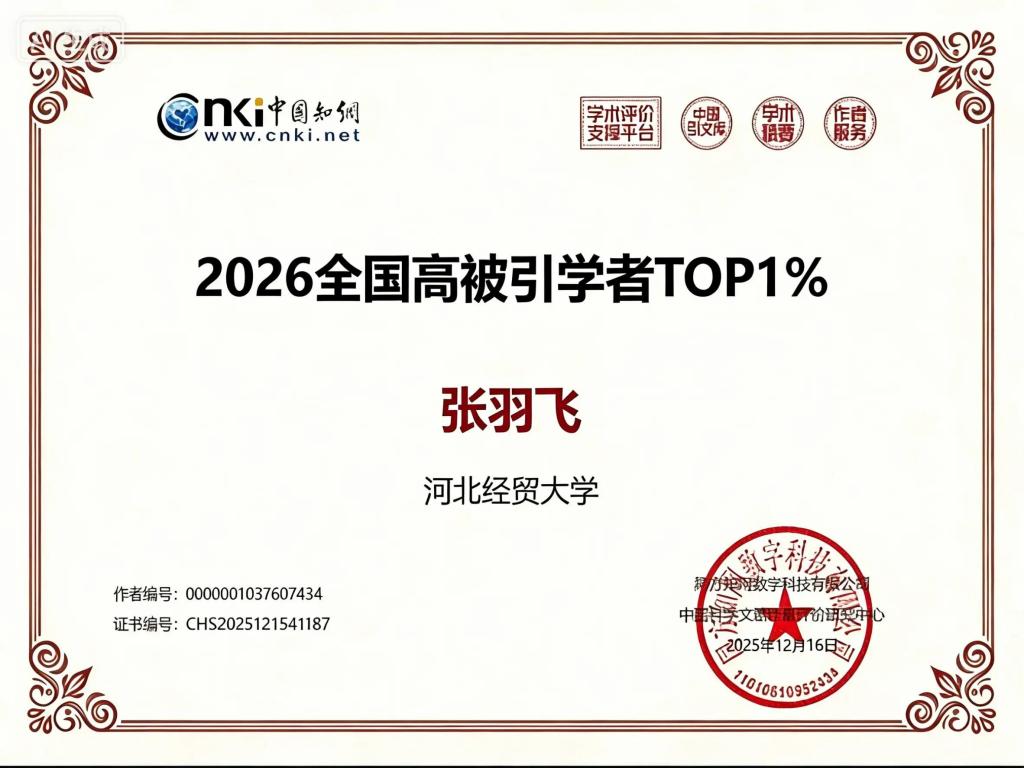公司张羽飞副教授入选全国高被引学者Top1%(工商管理学科),李桂荣教授(会计学科)、许龙副教授(工商管理学科)入选全国高被引学者Top5%。