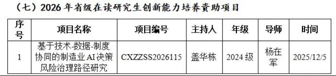 公司学硕研究生盖华栋获2026年省级在读研究生创新能力培养资助项目立项。