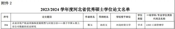 公司硕士研究生靳玉的硕士学位论文获评2023/2024学年度河北省优秀硕士论文。