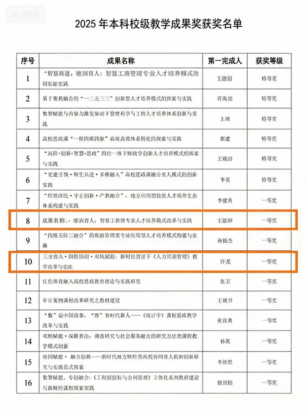 许龙副教授主持的《英文文献阅读》获批2025年省级研究生示范课程立项,张羽飞博士主持的《工商管理硕士<战略管理>教学案例库》获批2025年省级研究生专业学位教学案例库立项建设项目。