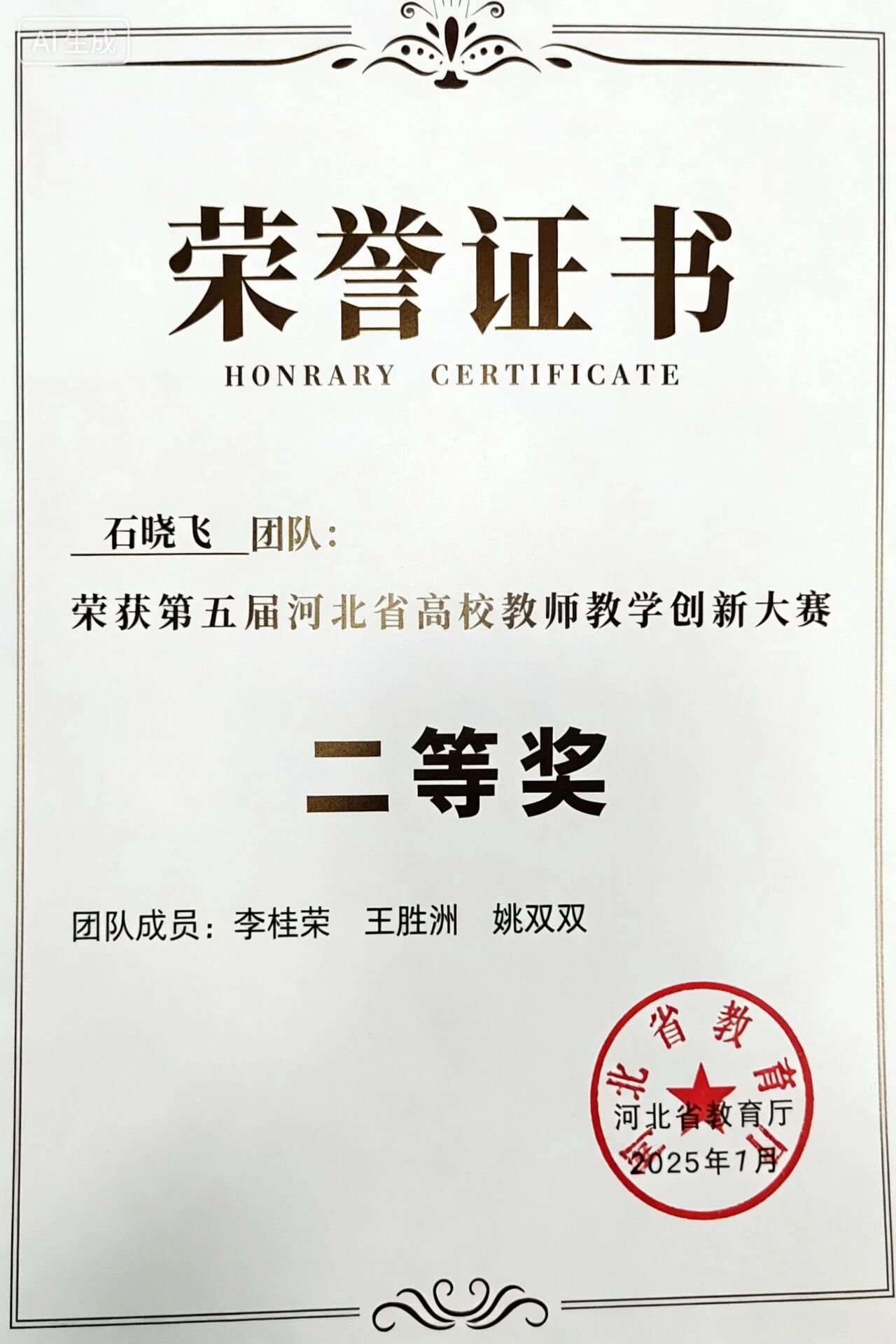 石晓飞教授(团队)在第五届河北省教师教学创新大赛中荣获二等奖。