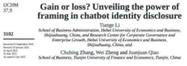公司青年教师李天歌博士作为第一作者撰写的论文"Gain or loss? Unveiling the power of framing in chatbot identity disclosure"在酒店与旅游管理领域国际顶尖期刊International Journal of Contemporary Hospitality Management正式刊出。