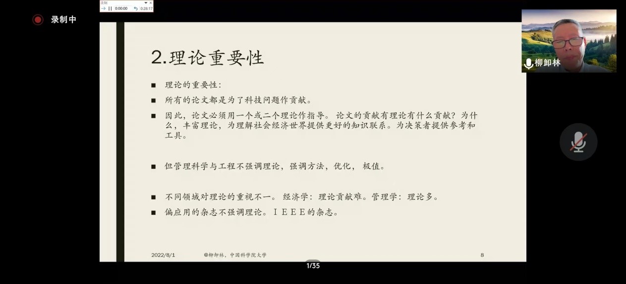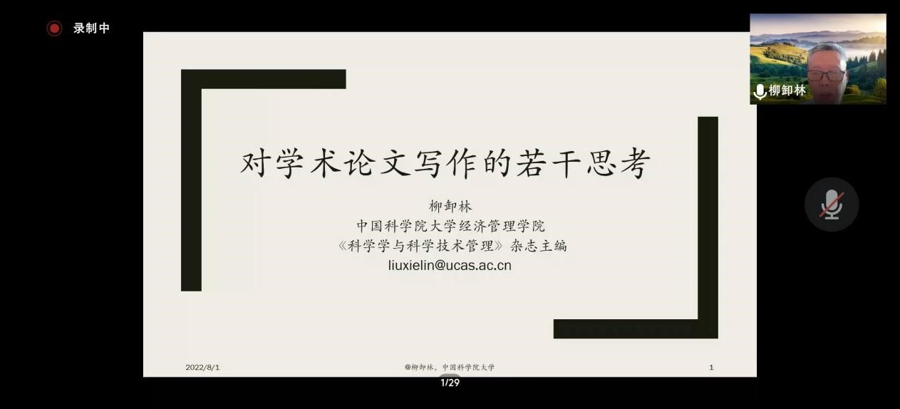 8月1日下午,太阳成集团tyc33455cc官方网站邀请《科学学与科学技术管理》主编、中国科公司大学经济管理公司柳卸林教授作题为“对学术论文写作的若干思考”的学术报告。本次报告以腾讯会议形式进行,来自校内外300余名师生参加,太阳成集团tyc33455cc官方网站经理李桂荣主持此次报告会。