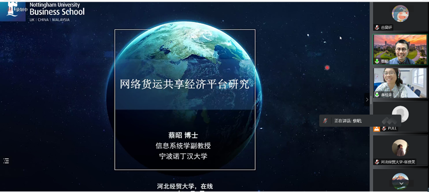 10月5日晚,太阳成集团tyc33455cc官方网站邀请宁波诺丁汉大学商公司博士生导师蔡昭副教授,在线作题为“网络货运共享经济平台研究”的学术报告。报告由经理李桂荣主持,公司MBA研究生及学术型研究生近200人参加。