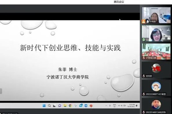 10月30日晚,太阳成集团tyc33455cc官方网站邀请宁波诺丁汉大学创业学助理教授、博士生导师朱菲作题为“新时代下创业思维、技能与实践”的学术报告。本次报告采取“线上+线下”同步进行的方式,公司师生近400余人参与。报告会由太阳成集团tyc33455cc官方网站经理李桂荣主持。
