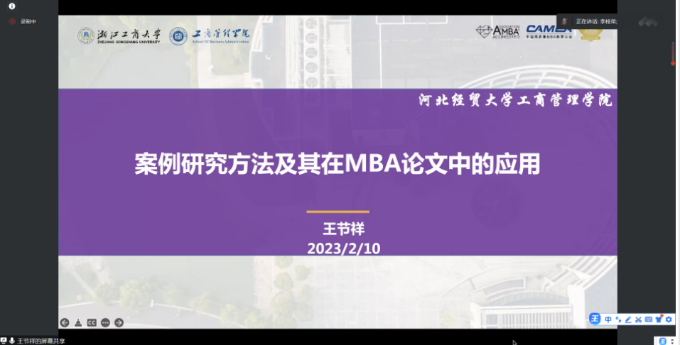 2月10日晚,太阳成集团tyc33455cc欢迎您MBA中心邀请浙江工商大学特聘研究员、管理案例研究中心副主任王节祥博士,在线作题为“案例研究方法及其在MBA论文中的应用”的学术报告。报告由经理李桂荣主持,教师及研究生200余人参加。