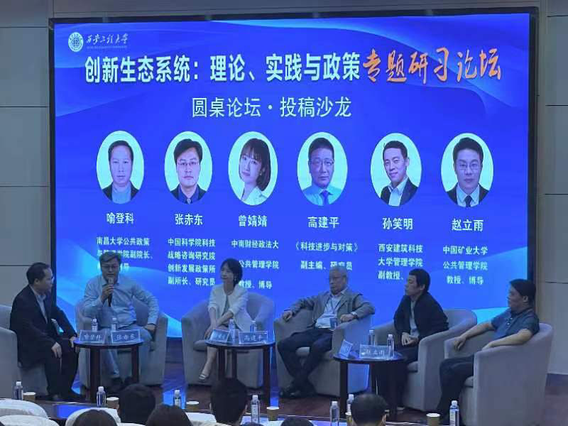 5月27日下午在由《科技进步与对策》杂志副主编高建平、中国科公司科技战略咨询研究院创新发展政策所副所长张赤东、中南财经政法大学公共管理公司教授曾婧婧、西安建筑科技大学管理公司副教授孙笑明及中国矿业大学经济公共管理公司教授赵立雨等进行圆桌会议及投稿沙龙。