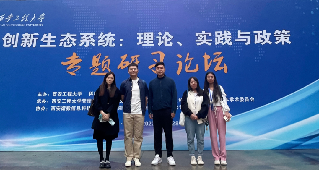 5月27日至28日,公司石晓飞副教授、青年教师张羽飞博士、许龙博士及硕士研究生窦博文、周嘉怡应邀参加了在西安工程大学举办的《创新生态理论:理论、实践与政策专题研习论坛(2023)》。