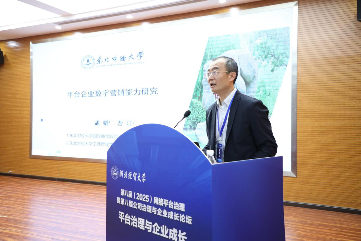 东北财经大学国际商公司经理孟韬教授作题为“平台企业数字营销能力研究”的主题报告。该研究基于动态能力理论、平台生态系统理论以及实践基础理论,运用多源文献数据与企业调研数据进行了实证检验,研究了平台企业数字营销能力的概念维度、测量方法、前因及其对数字营销绩效的影响机制。其创新之处在于理论整合与方法创新,即通过质性元分析构建了数字营销能力的多维结构,并开发出具有良好信效度的测量量表,为数字营销能力的理论建构与实证研究提供了系统框架。