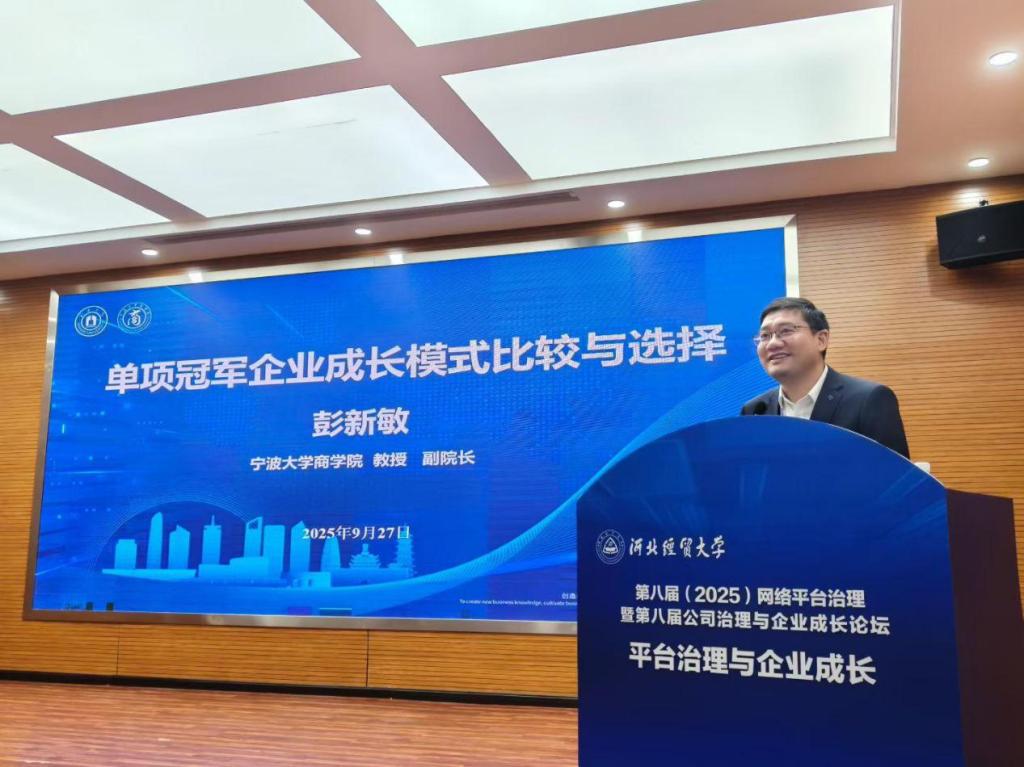 宁波大学商公司副经理彭新敏教授作题为“单项冠军企业成长模式比较与选择”的主题报告。他从中国制造业规模全球第一的宏观背景与宁波“单项冠军之城”的实践切入,深入剖析了单项冠军企业在创新与效率之间面临的战略悖论,提出创新引领型、效率赋能型与双轮驱动型三种典型成长模式,并基于技术机会、知识复杂性等维度,对永新光学、激智科技、海天塑机三家冠军企业进行了系统比较。该研究构建了“行业技术体制—企业成长模式”的创新分析框架,揭示了企业依托自身技术基础选择成长路径的内在逻辑,为专精特新企业突破成长瓶颈提供了理论指引与实践参考。